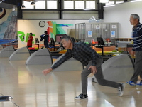 | 11月30日、松九会佐賀地区年末恒例のボウリング大会と年末懇親会が開催されました。 懇親会に先立ちパルクスポーツプラザ筑紫野において、参加者18名でのボウリング大会。久しぶりのボウリングに 球筋が一定せず苦戦の連続。勢いあまって滑って転んだり、ボールを後ろに落としたりの珍プレーもあり、歓声と 笑いの渦がボウリング場内に響き渡りました。そんな中、安定した投球で野田修一さんが見事優勝。準優勝は 千綿千恵子さん、三位が末成幸二さんとなりました。 年末懇親会は17時から鳥栖市光林飯店で開催。70名という多くの参加者で記念撮影の後、加納地区委員の 司会で開始。今回、初めて懇親会に参加した金子嘉紀さん、荒木一和さんの自己紹介の後、小副川幹事から挨拶と 松九会の活動状況について、特に参加者が増加し活発化している同好会活動への一層の参加が呼びかけられました。 前田地区委員の音頭による乾杯で懇親会がスタート。サガン鳥栖ホーム最終戦を観戦後に急いで駆け付けた会員も チラホラ。各テーブルでは久しぶりの再会に話も弾み、時間の経過とともに席は入り乱れ。カラオケ大会では初参加の 荒木さんの熱唱もあり、盛り上がりを見せました。懇親会恒例となったビンゴゲームでは世話役宮崎重信さんが自ら 選定した数多くの賞品説明が盛り上がりを見せるとともに、ビンゴ当選者が賞品選択に頭を悩ませる場面も見られました。 最後に会員の皆さんのご健勝を祈って加納地区委員の一本締めで宴を終えました。 (レポーター 前田 究) |