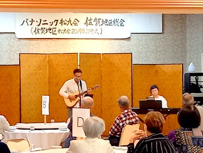 | 2023年度佐賀地区総会及び懇親会を開催しました。(参加人数43名) まず、幹事より松九会定期総会の議案内容の説明と2022年度佐賀地区同好会の実績及び2023年度の計画について パワーポイントにて説明。 その後佐賀地区結成20周年として記念行事にバンド(ザブトーンズ)による演奏を1時間行って20周年らしき総会と なりました。その後、懇親会のスタートに当たり前田会長より、パワーポイントにて会社概況と旧九松の現在の状況説明を いただきました。懇親会最後の締めを古沢悦郎さんにお願いし終了しました。 地区総会の資料は「ここをクリック」してください。 (小副川 記) |