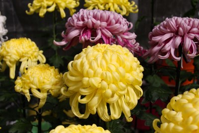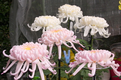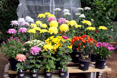 2年前からは知人の影響で菊の花に魅せられ、月2回「菊の教室」で学びながら現在約70鉢の育成に奮闘しています。