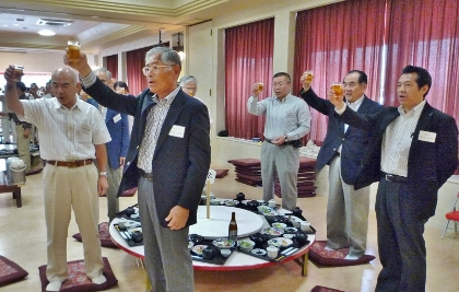 | 小倉地区委員の乾杯の音頭で、賑やかな懇親会がスタート | ||