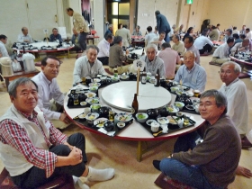 | 本年度も75名(60%)の会員及び松九会本部の峰会長、本田事務局長の参加を頂き、鳥栖の光琳飯店で開催致しました。 まず、早川さんの司会で、平成23年度に逝去されました十四霊、及び青沼最高顧問のご冥福をお祈りし全員で黙祷を捧げました。 議事は定期総会(佐賀地区より4名参加)における23年度活動報告と24年度活動計画説明の後、同じく地区活動報告に続き活動計画(地区行事と6同好会)の説明が行われ、地区運営体制(地区委員、各世話役、連絡網)と共に満場一致で承認されました。 今回は役員の新任(中嶋克彦地区幹事)と退任(小林正勝地区幹事)が行われましたので小林さんより退任の挨拶が行われた後、松九会本部の峰会長(新任)より本田事務局長の紹介とご挨拶があり、松九会への思いと佐賀地区への期待を語って頂きました。 その後、記念写真を撮り、中嶋幹事の挨拶に続き来賓の方(鈴木GM、山崎支部副委員長)より挨拶を頂き、小倉地区委員の力強い乾杯の音頭で懇親会に入り、12のテーブルを囲み、久し振りの再会とお互いの近況報告など楽しく語り合いました。最後に地区行事に初めて出席された新会員4名(松本さん、久保さん、下橋さん、野田さん)の皆さんを紹介し、川野地区委員の一本締めで、会員の皆さんが12月の年末懇親会に元気で再会できる事を祈念し閉会しました。 (レポーター徳永敏夫、金丸博志) |