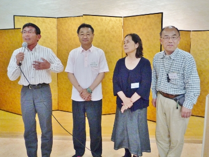 | 世話役の宮崎さん、平さん | 開会式で挨拶する中嶋幹事 | 団体優勝チーム |