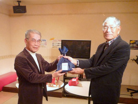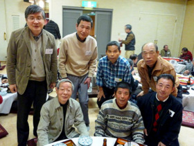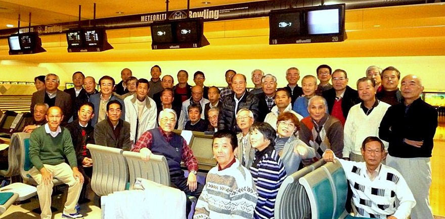 | 今回は懇親会に先立ち、従来の話を聞く「健康講演会」に変わり体を動かす「ボウリング大会」を鳥栖市のT・T BOWLtosuにて行いました。45名が集い、初代幹事羽根さんと前幹事小林さんの始球式でプレー開始。 若かりし時のボウリングブームを思い出し、皆さんハッスルされ一投毎に各レーンより拍手と溜息が聞こえてきました。適度の運動と心地よい汗を掻き心身を一新、個人優勝はスコアー329(2ゲーム)で野田修一さん、団体優勝は平千秋さんチーム(他3名は大村さん、吉田さん、小宮さん)に輝きました。終了後、会場の光琳飯店へ移動。 懇親会は冷え込む天候の中、80名の方が参加され、全員良い表情で記念写真におさまった後、平世話人の司会で始まり、中嶋幹事の挨拶(会社概況説明、地区活動報告とお礼、来年度以降の更なる活動支援のお願い)に続き、小倉地区委員による「皆さんいつまでも元気で」の乾杯の音頭で開演。 初参加の山川浩司さん・西橋敏郎さん・岡秋人さんの挨拶、プロ顔負けの選抜者によるカラオケ絶唱も有り、11のテーブルを囲み、旨い酒と料理で2時間に亘り歓談、会場は久し振りの再会と近況報告などで終始盛り上がり、笑い声と笑顔が絶えませんでした。締めは、次回の再会と全員の健勝を祈念し川野地区委員の音頭による一本占めで閉会しました。 閉会に際し、樋口靖則さんからCMC(カンボジア地雷撤去キャンペーン)活動支援募金のお願いがあり、20、921円が寄せられました。 (レポーター 徳永敏夫) |