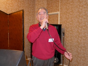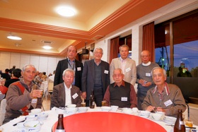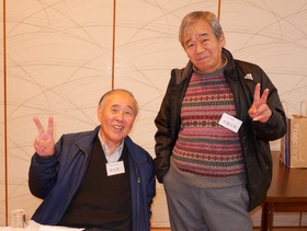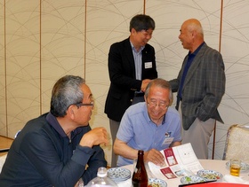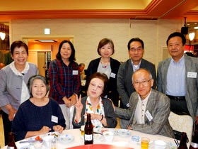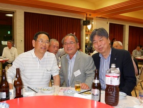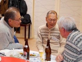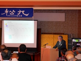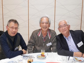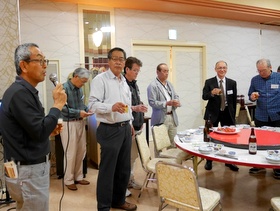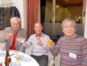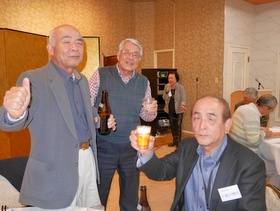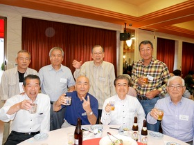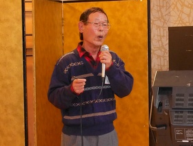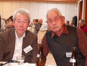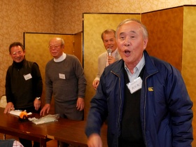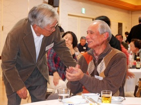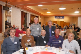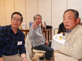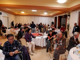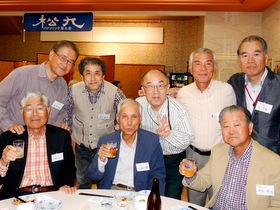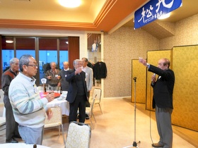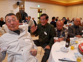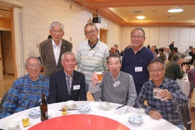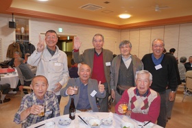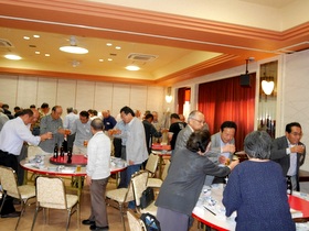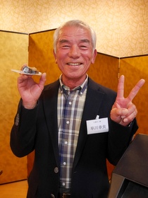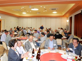 | 会員76名及び松九会の金子会長と佐賀工場幹部のご出席を頂き、鳥栖市の光林飯店にて開催。平さんの司会で昨年度に逝去された会員(佐賀地区3名を含み17名)の方への黙祷を捧げた後、小倉幹事より定期総会の報告に続き、28年度の地区活動の報告と29年度の活動計画・地区運営体制が説明され、今年度も150名(松九会の約10%)の全会員の協力で活動を盛り上げるべく満場一致で承認されました。続いて、本年度の古希対象者6名の紹介と出席者4名に対する記念品の贈呈後、全員での記念撮影。 懇親会に先立ち金子会長より社名変更(九松→PCC→PSN→4月よりCNS)の変遷、来賓の南里工場長より佐賀工場はコネクティッドソリューションズ社(CNS)傘下でモノづくりを強化、大森書記長より旧九松の方が少なくなりつつある等の挨拶を頂いた後、加納地区委員の乾杯で懇親会がスタート。10のテーブルを囲み、再会の喜び・近況報告など和やかに語らう中、佐賀地区の演歌歌手によるカラオケ、宮崎重信さんの流暢なしゃべりで一喜一憂したビンゴゲームで盛り上がった懇親会も、小副川地区委員による今年度の活発な活動を祈念した「一丁締め」で閉会。 名残惜みながらも、次の再会を願って帰路につきました。 (レポーター 徳永敏夫) |