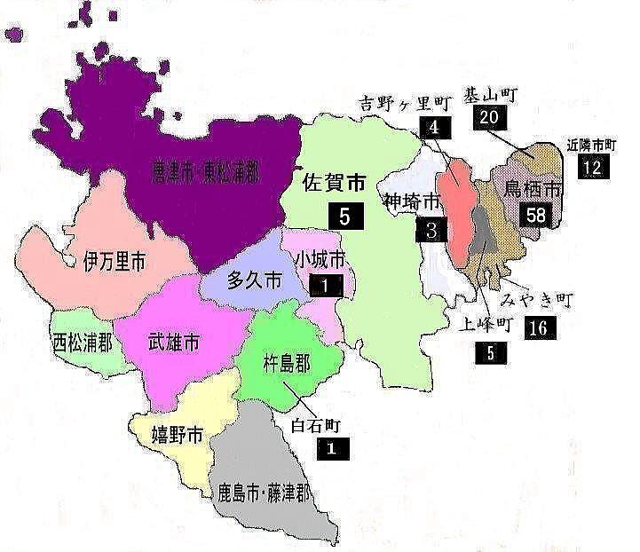 | 佐賀地区 居住市町別会員数‥125名‥H22/03.01現在 |