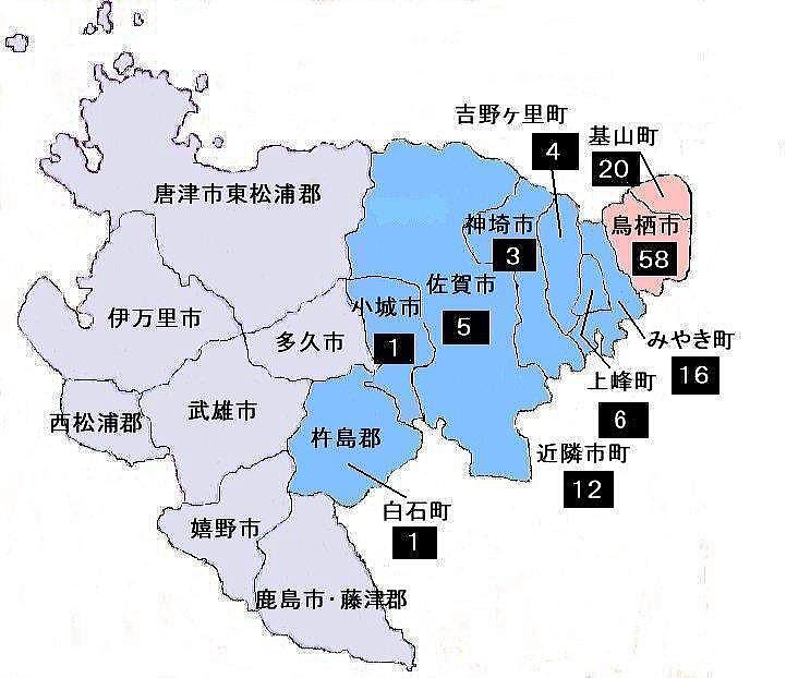| 佐賀地区 居住市町別会員数‥125名‥H23/03.01現在 |