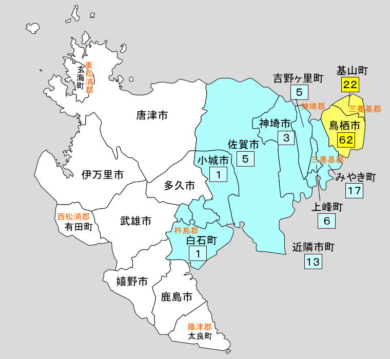 | 佐賀地区・居住市町別会員数・・・ 135名 平成26年3月1日現在 |