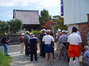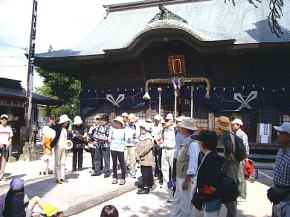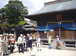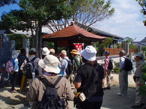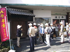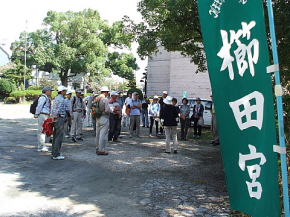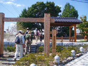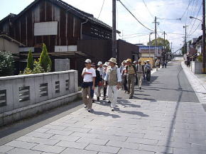 | 第28回山歩会(ウォーキング)は会員30名が参加、水と緑と歴史のまち神埼で長崎街道「長崎〜小倉までの57里(228Km)の道」の宿場の一つである神埼宿の「ぶらり旅」を行いました。10時30分神埼市役所を出発、さわやかな天候の下、流暢な職員ガイドさんの案内で先ずは荘厳な櫛田宮(約1900年の歴史がある神埼荘の総鎮守)を学ぶ。次に長崎街道沿いの残存する家・跡地(本陣及び脇本陣跡、問屋場跡)・西木戸口と町並みを散策し「神埼宿場茶屋」で地元の神埼麺と名物ソーメン入りコロッケを賞味。その後は筑後川支流の馬場川(映画:がばいばあちゃんのロケ地)沿いに船付場や石段の洗い場を探索しつつ東木戸口を経て長崎街道に唯一現存する「ひのはしら一里塚」に到着、塚上より背振の山並みと吉野ヶ里遺跡の建物を眺めた後帰路へ、近郊にも「ちょい旅」出来、心癒せるスポットが在ることに気付いた楽しいウォーキングでした。(徳永 敏夫 記) *問い合わせ先: 神埼市商工観光課 電話:0952−37−0107 神埼商工会 電話:0952−52−7131 |