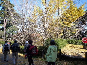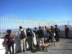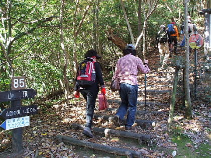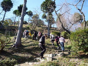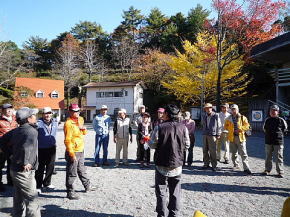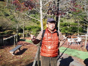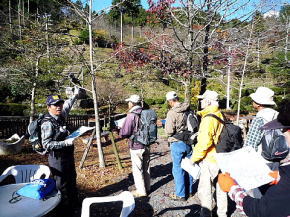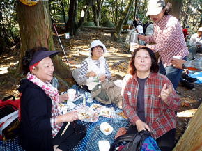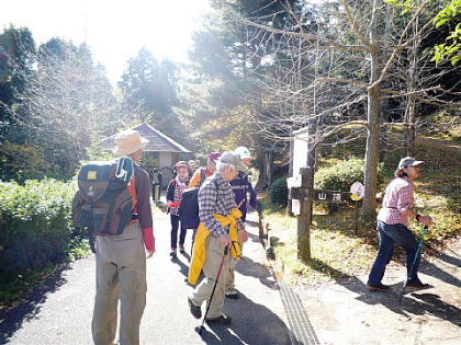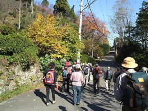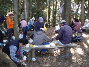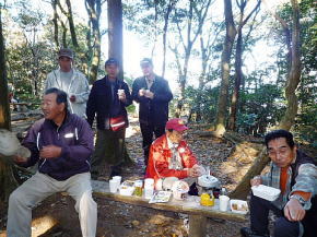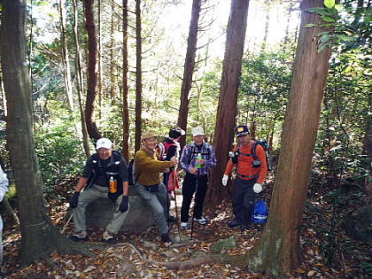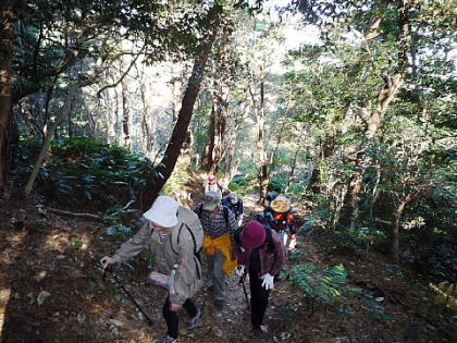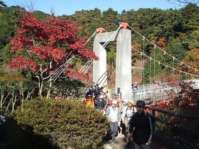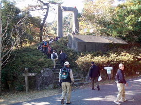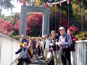 次に吊り橋を渡りながら、晩秋の紅葉(終りがけ)を眺めて県木の森へと進み、いよいよ山登りのスタートです。山頂までの途中では、気温が高く衣服を脱いで調整しました。山頂は木陰の中で陽が射さず寒さを感じました。到着後は楽しみの昼食休憩、弁当を食べながら飲み物を汲み交わして(ほんの少し)、久し振りに会った仲間とお互いの近況の話題で親交を深める事が出来ました。食事後は、寒さのせいで体が冷えて”風をひいてはまずい”の思いで早々と下山しました。油山市民の森は、年間18万人の入山者あり、安全で快適な1日を過せる森です。 *問い合わせ:油山市民の森管理事務所 TEL:092-871-6969(吉田 勝則 記) |