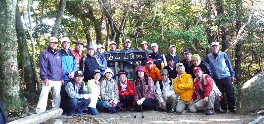 第29回佐賀地区山歩会 福岡市油山里山歩きを11月24日に実施しました。今回も23名と大勢の方が参加されました。当日は、絶好の天気に恵まれて、8時30分に基山町役場に集合し5台に便乗して一路、油山市民の森を目指して出発。油山市民の森管理事務所前から油山山頂を目指しました。途中の中央展望台から眺める眺望は、福岡タワー・海の中道・ヤフードーム等を見渡す景観で一時の疲れを癒してくれました。
