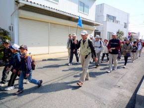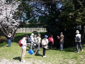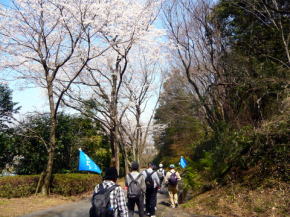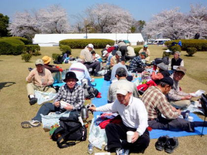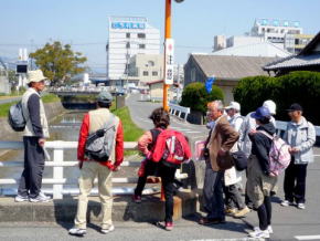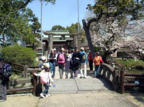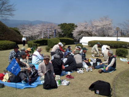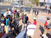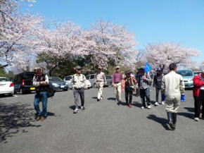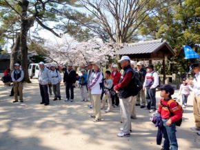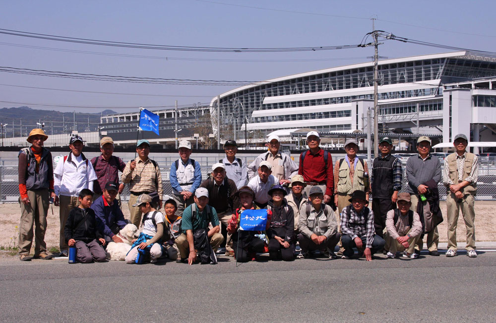 | 第30回山歩会・里山歩きは34名がJR鳥栖駅に集合、春休みとあってお孫さんも7名参加。4月に入っての初日、朝から絶好のお花見日和、長崎街道を散策しながら開通後間もない新幹線新鳥栖駅に程近い桜の名所朝日山を目指しました。鳥栖駅を出発し、八坂神社で鳥栖観光協会のボランティアガイドと合流。神社の成立ちの説明を聞き参拝後、今も残る二百年前の酒蔵や旧家の白壁造りと町並み、鍋島藩領と対馬藩領を分けていた番所川の轟木番所跡、鍋島家が藩境の守りにした日子神社、室町時代に旅人を守るために彫られた六地蔵などを巡り、轟木宿でガイドの方と別れを告げ一路朝日山公園へ。 到着すると既に多くの花見客で賑わっており、20度という陽気で一気に咲き揃った「桜」と眼下の九州新幹線の「さくら号」を見ながらの昼食。休憩後は桜のトンネルを下り新鳥栖駅へ、新駅をバックに記念撮影のあと駅舎を見学し解散、心地よい汗をかいた春の楽しいウオーキングでした。(レポーター 徳永敏夫 記) |