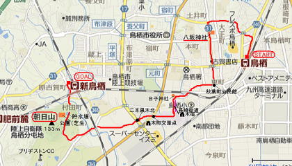 | ◇JR鳥栖駅⇒鳥栖八坂神社⇒長崎街道⇒朝日山⇒JR新鳥栖駅 | ||||||||||