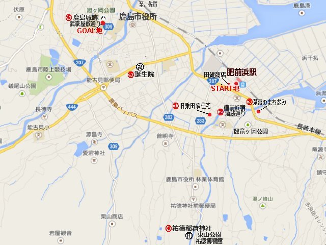 JR肥前浜駅⇒肥前浜宿酒蔵通り⇒萱葺のまちなみ=(バス移動)=祐徳稲荷神社=(バス移動)=大本山誕生院=(バス移動)=武家屋敷通り⇒鹿島城址/旭ヶ岡公園