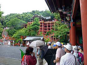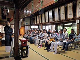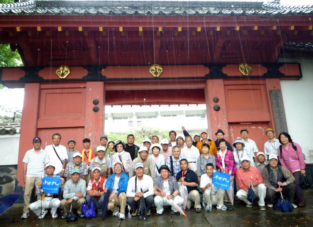 次に日本三大稲荷のひとつでありパワースポットの祐徳稲荷神社に参拝する。説明を聞きながら各所を巡ると改めて学ぶことが多くありました、新義真言宗大本山の誕生院では住職の案内で院の成り立ちと説法を心静かに聞きました。次に日本の歴史公園百選である「鹿島城址・旭ヶ岡公園」へ。かっての城門である赤門と大手門、堀や石垣、周辺に残る武家屋敷、各碑と像を巡り、鹿島藩鍋島家を忍びました。今回は底抜けに明るいガイドさんに魅了された楽しい一日となり、さんぽ会は体と頭の体操ができて良いなあ…との声を聞きながら鳥栖に到着、次回(10月1日)の参加をお願いし、散会しました。
