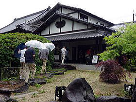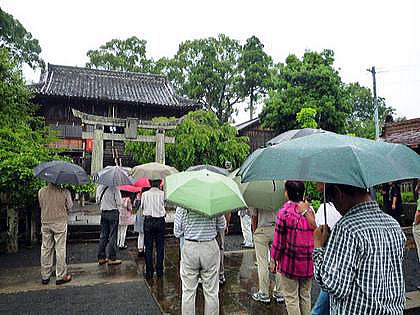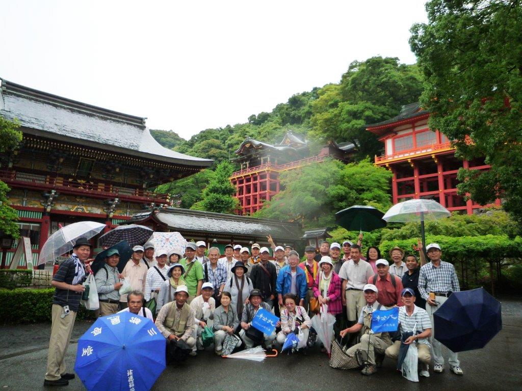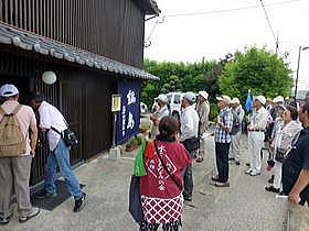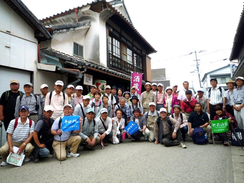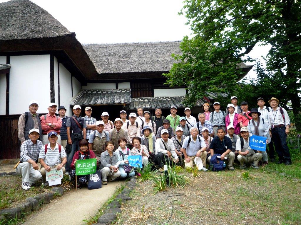 梅雨入りし午後から生憎の雨の中、参加者39名で鹿島のいいトコロを散策しました。JR鳥栖駅を貸切バスで出発、長崎道を走り一路鹿島市へ。観光案内のパンフレットを見ながら楽しみにしていた酒蔵巡りでの試飲の話など賑やかな雰囲気の中、JR肥前浜駅に到着。まちなみ会のガイドさんと合流し、観光バスで鍛えた流暢な説明で長崎街道多良往還(多良海道)の宿場町として栄えた肥前浜宿「伝統的建造物群保存地区である酒蔵や武家屋敷の浜中町八本木宿(通称:酒蔵通り)と細い路地と萱葺の町屋の浜庄津町・浜金屋町」を巡る。江戸・明治から残る酒造場の趣ある白壁土蔵の建物、旧乗田家住宅(武家屋敷)、継場(荷物の中継所)や旧魚市場の建物などに歴史と風情を感じながら、観光酒蔵の肥前屋さんでチョイト一杯・好みの酒を入手。次に港町・商人町の面影が残る萱葺のまちなみを見て心が和んだ後、祐徳門前町の食事処「三都屋」へ。地元食材満載の刺身定食を頂きながら一息入れる。