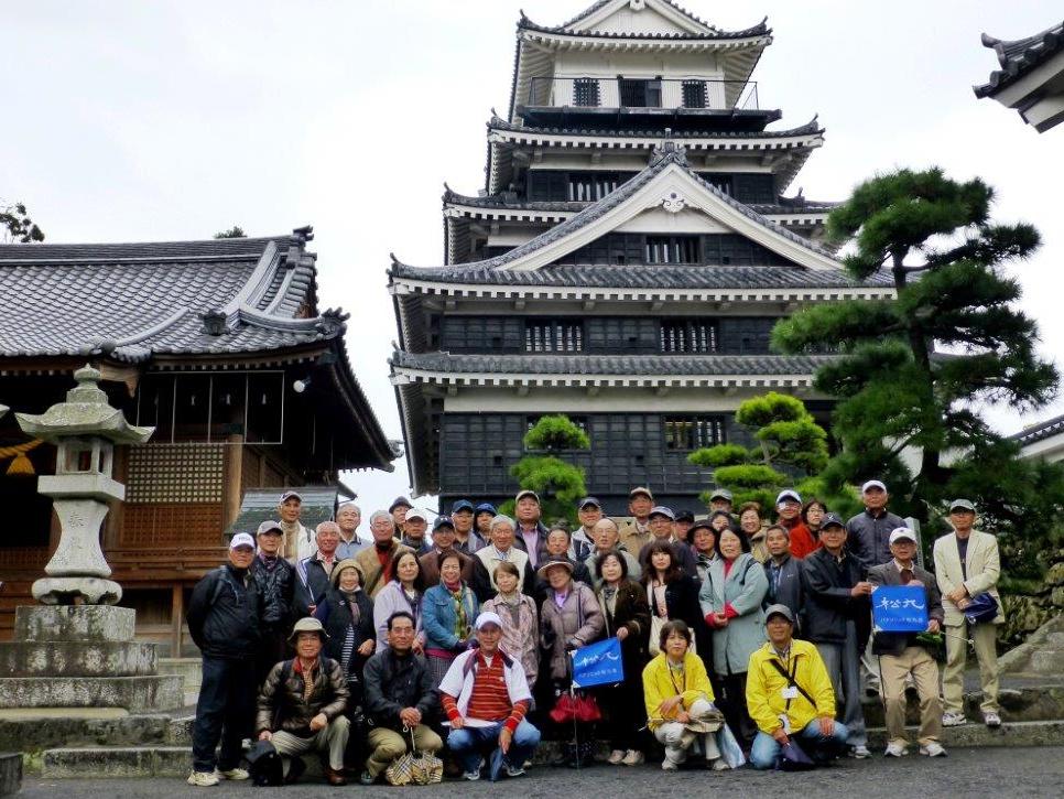 今回は、NHKの大河ドラマ「軍師・官兵衛」ゆかりの中津城と耶馬溪の紅葉を堪能しました。参加者42名でJR鳥栖駅を8時20分にバスで出発、初参加の久保道人さんと松本美代子さんの挨拶の中、日田インターで降り山国町の情緒ある案山子軍団・耶馬溪町山あいの錦秋・名所(青の洞門、オランダ橋)を車窓より眺めながら中津城に到着し、観光ガイドさんと合流。