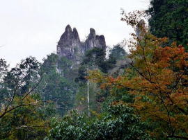 一目八景の奇岩群(左:仙人岩、中:無名岩、右:鳶の巣岩)