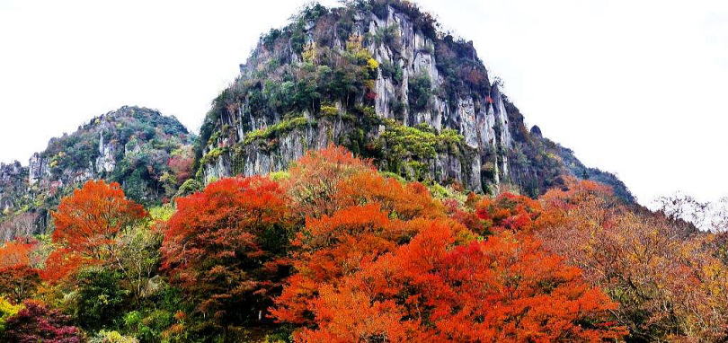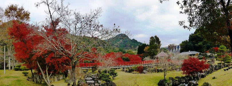 紅葉の深耶馬渓/渓石園の日本庭園と奇岩秀峰の一目八景のもみじ谷を巡る