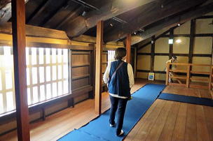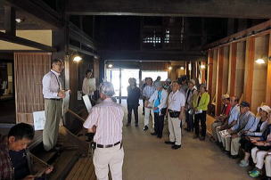 ガイドさん説明(天井の梁が大きい) |