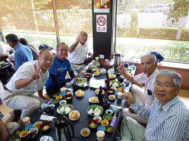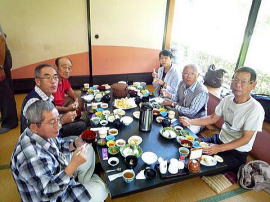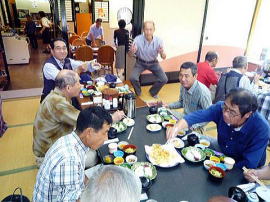 いつもながら和気あいあいの食事風景ですが、この時ばかりは皆さん童心に戻り時を楽しんでおられます(たんに呑み助 ? )