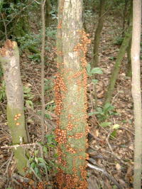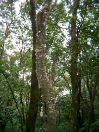 | 九千部山から石谷山へ尾根道を往復約6Km、ブナ原生林の自然歩道を歩いて森林浴を満喫した。この「九千部山」からの眺めは、東は小郡・甘木市方面、西は背振の山々、南は鳥栖・久留米市方面、北は百万都市福岡市方面、と360度の眺望が楽しめる。この山の名の起こりは、平安時代(951年)に「法華経九千部を読誦して、打ち続いた風水害を鎮めよう」と、一人の僧が命をかけて念願成就したという事から、起きたと伝えられ何となくうなづける。また、自然道の途中馬の背のような所からは、この地に降った雨水が僅かの差で北に流れればその 雨水が合流して、時には荒れ狂う日本海へ注ぎ、南へ流れれば、いつかは穏やかな有明海へと注ぐとで、それぞれは多くの動植物を育み、その役目を果たすことになることが理解できる。そして、この山もまた、自然のいとなみを更に未来へ向けて、営々と続けてくれることであろう・・・。再登頂の日を楽しみにしたいものである。 |
