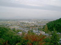![]() 眼下のハゼ並木と筑紫平野の眺望 |