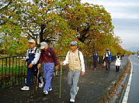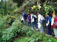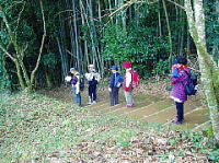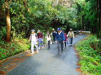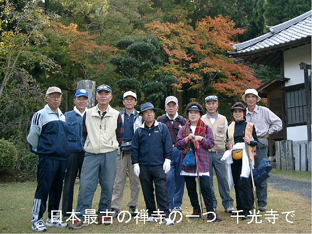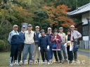 | 前日からの雨も上がり、久留米緑花流通センターへ集合。柳坂曽根の紅葉したハゼ並木で記念写真に収まって、ハゼ並木を真直ぐ進むと20分程で永勝寺へ到着。創建は天武天皇九年と言われ、日本三大薬師の一つで境内からの見晴らしも良い。林道を30分程進むと登山道へ、樹林の中の坂道を登って下ると兜山キャンプ場に到着。ここからは林道を進み、最後は足元が悪い急坂を頑張って耳納山へ。山頂は狭く樹林で眺望も悪い。直ぐに下って兜山キャンプ場へ戻り、おにぎりと味噌汁の昼食。兜山からは眼下に筑紫平野・筑後川、遠めに九千部山・古処山・宝満三郡山など良い眺めであった。 又、兜山には 「わが国は 筑後の国や 白日別 母います国 櫨多き国」と青木繁が詠んだ歌碑がある。 帰路は林道を経て竹林が綺麗な山道を千光寺へ、開山は建久三年で日本最古の禅寺の一つである。五千本のあじさいが植えられ「あじさい寺」として親しまれているが、今回は真赤なカエデが綺麗だった。約6kmの里山歩きを全員元気に下山、麓のスパリゾートH久留米の天然温泉で疲れを癒し解散した。 |