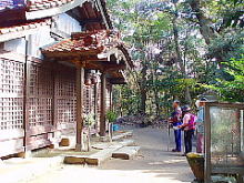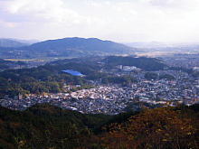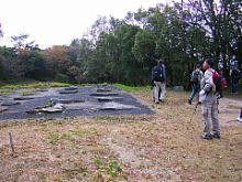 休憩後、土塁を下りピークを過ぎるとベンチや方位盤がある焼米ヶ原へ出た。南側の展望が広がり、大宰府政庁址や市街地・天満宮・国立博物館の大きな建物も見える。車道を渡り礎石群や鏡池を通って、県民の森へ戻った。今回も天気に恵まれ、大野城の史跡と土塁を巡る6kmのコースで紅葉と温泉も楽しんだ里山歩きの一日であった。 |