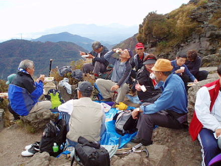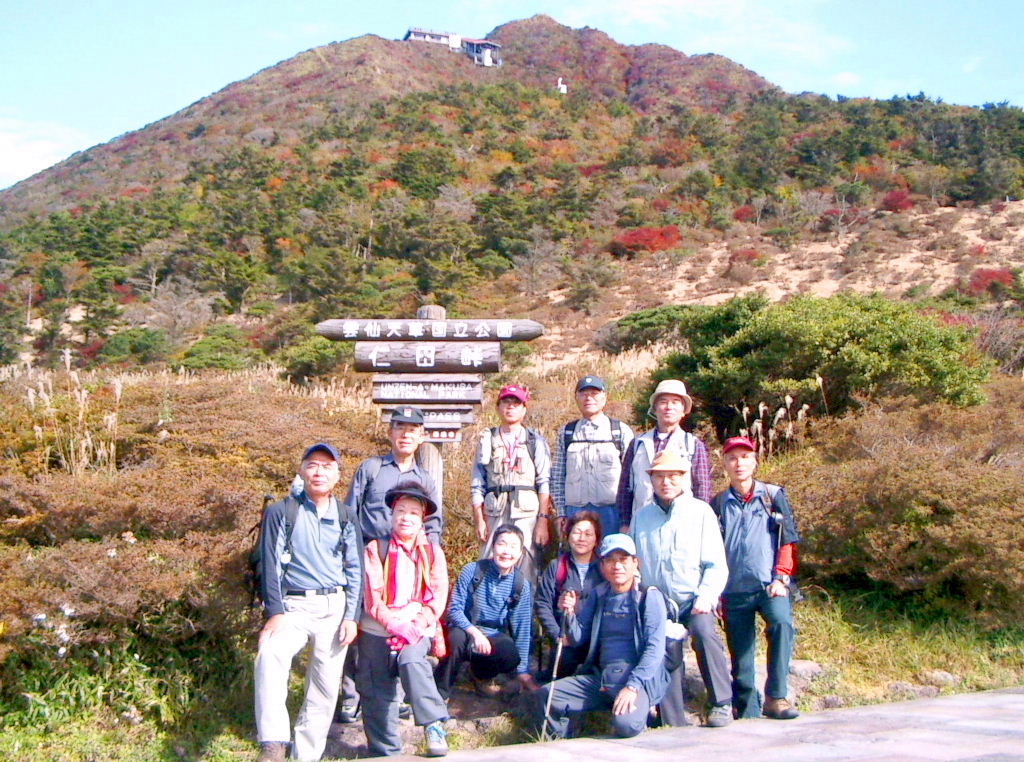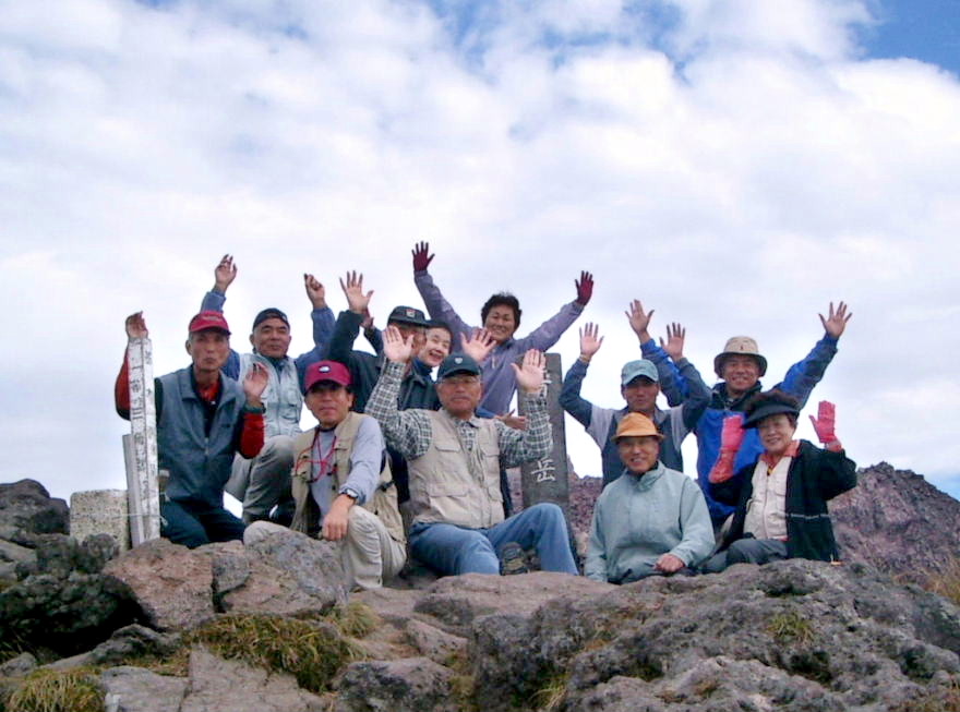 ![]() 普賢岳山頂で‥万歳をしたので顔が隠れた人がいました |