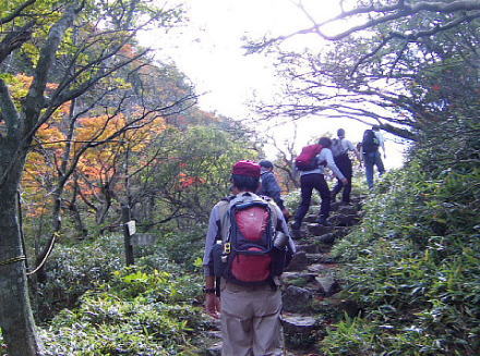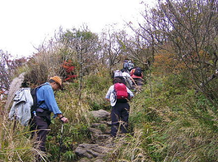 ![]() 普賢岳山頂へ、急な登りでした |