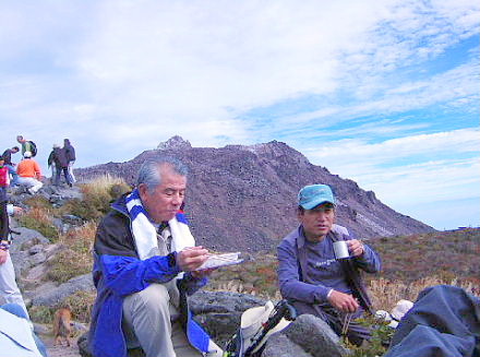 ![]() 昼食休憩/普賢岳山頂(平成新山ドーム前)で |