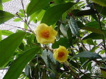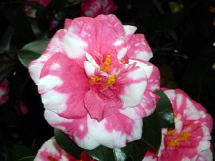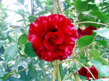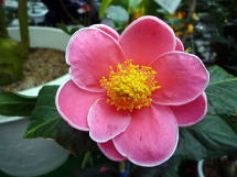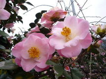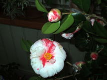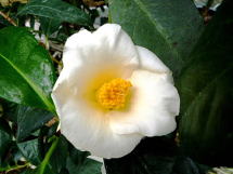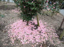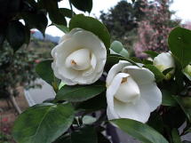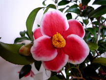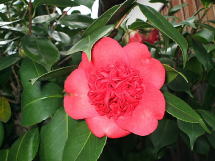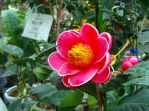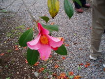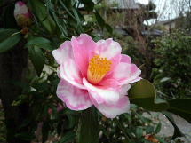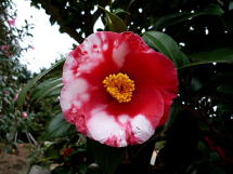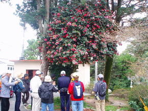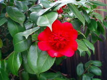 ![]() 可憐な大輪の花をつけた、ツバキの古木に見とれる |