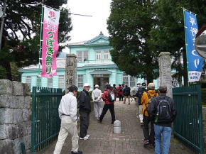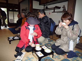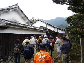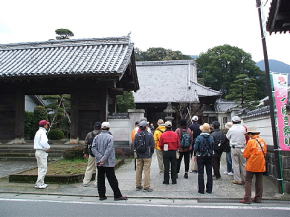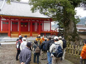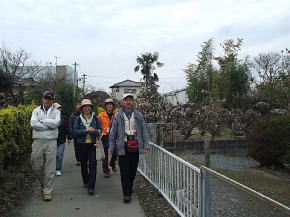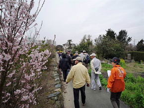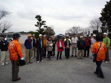 ![]() ウオーキングルートを説明する ボランティアガイドの皆さん |