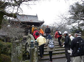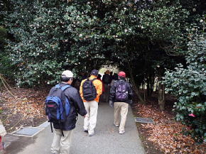 | 第25回佐賀地区山歩会草野ウォーキングを3月3日(水)に実施しました。当日は、山歩会に初参加の6名を含め、総勢31名と大勢の方に参加頂きました。幸い雨に遭わず、9時34分にJR筑後草野駅に集合、一路、草野コミュニティーセンターヘ向いました。ボランティアガイド゙さんの挨拶に始まり、メインイベント期間(3月20日〜22日)久留米つばきフェアーの説明を受け、二班に分かれてウオーキングに出発しました。 寿本寺の山門から歴史資料館(入館なし)と上野邸へ、特に上野邸では、160年前の”おきあげ”(竹串押絵雛)飾られていました。製作時期は、明治初期と云われ、綺麗に保存されているのは珍しく貴重であると思いました。専念寺・須佐能袁神社を巡り、皆さん楽しみの1つであります昼食です。今回は、食事処”なかの”で飲み物を汲み交わしながら、お互いの親交を深める事が出来ました。 食事後は、山辺道文化館で早春の久留米ツバキ展(入館無料)を観賞しながら、ツバキの種類の多さにびっくりで名前を覚えることが出来ません。その後、久留米つばき園に行き、開花間もないものからすでに絶頂を過ぎたものまで何十種類のつばきを観賞することが出来ました。今回は古き草野町の歴史を訪ね、沢山のツバキを観賞でき参加者に皆さんに大変好評頂き、人生の1ページに加える有意義な1日でした。 また、久留米市草野町で国際つばき会議久留米大会が開催されます。是非、興味のある方は時間を設けて行かれたらまた違った草野町が見られると思います。お寺・神社もたくさんあります。(吉田 勝則 記) *問い合わせ:久留米市 草野校区コミニュティーセンター 電話:0942−47−0002 |